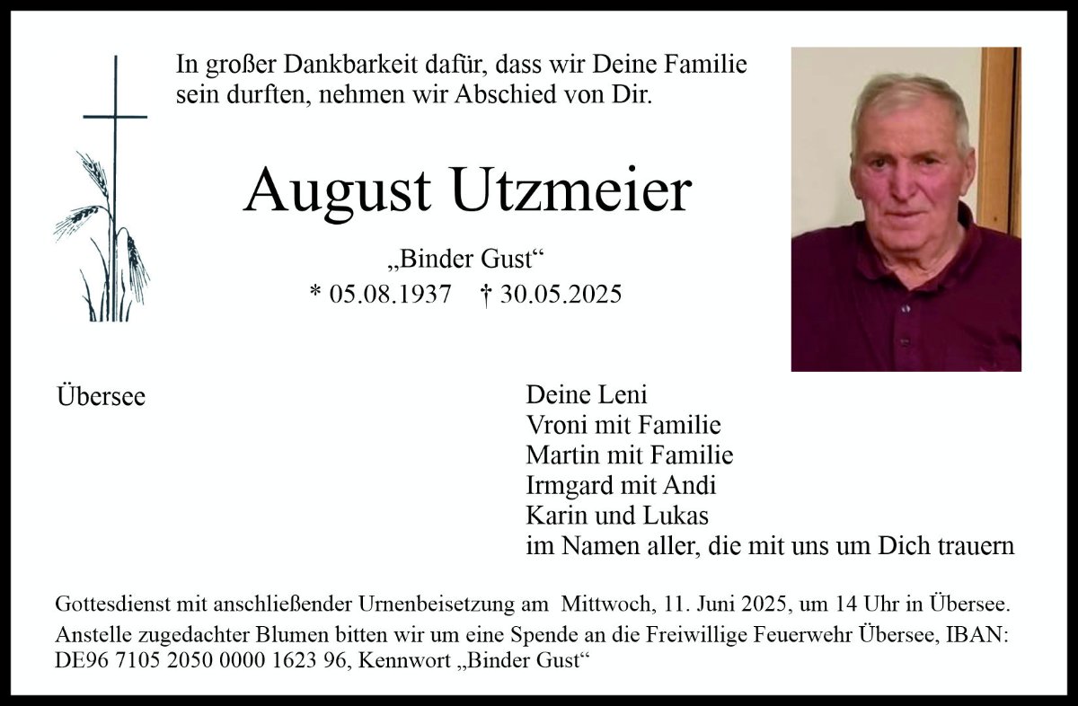 August Utzmeiergestorben am 30. Mai 2025