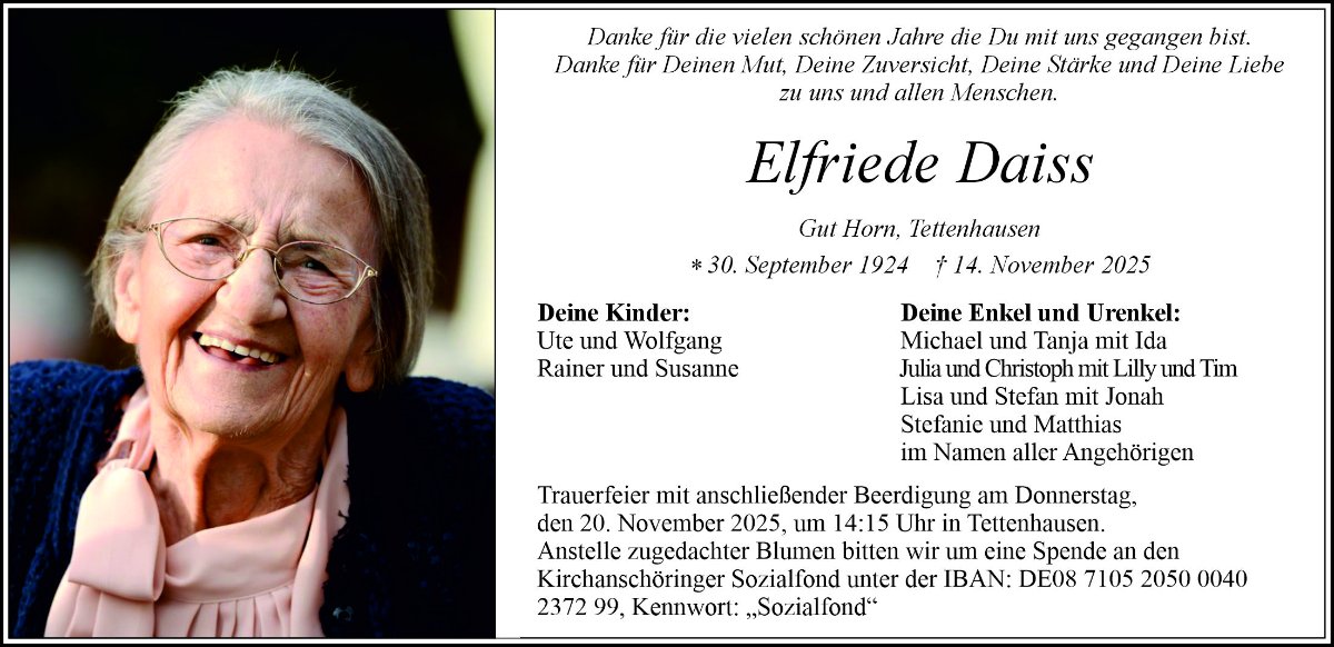 gestorben am 14. November 2025 in Waging - Tettenhausen