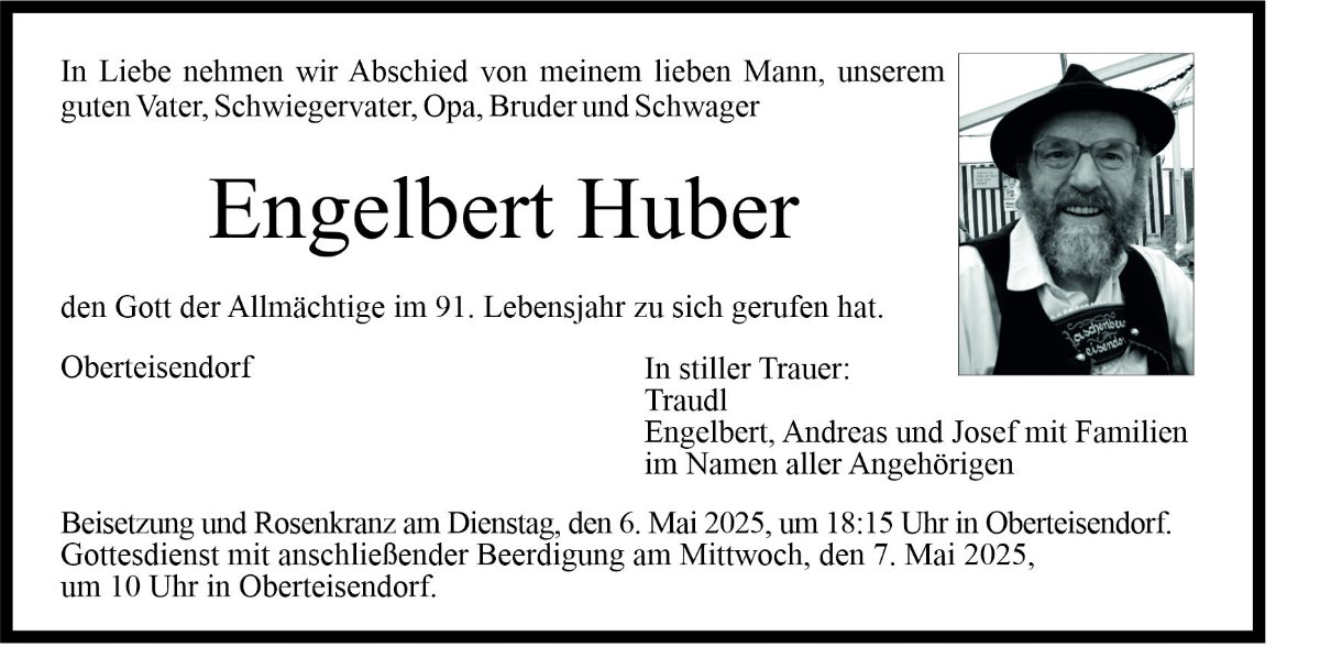 Engelbert Hubergestorben am 1. Mai 2025
