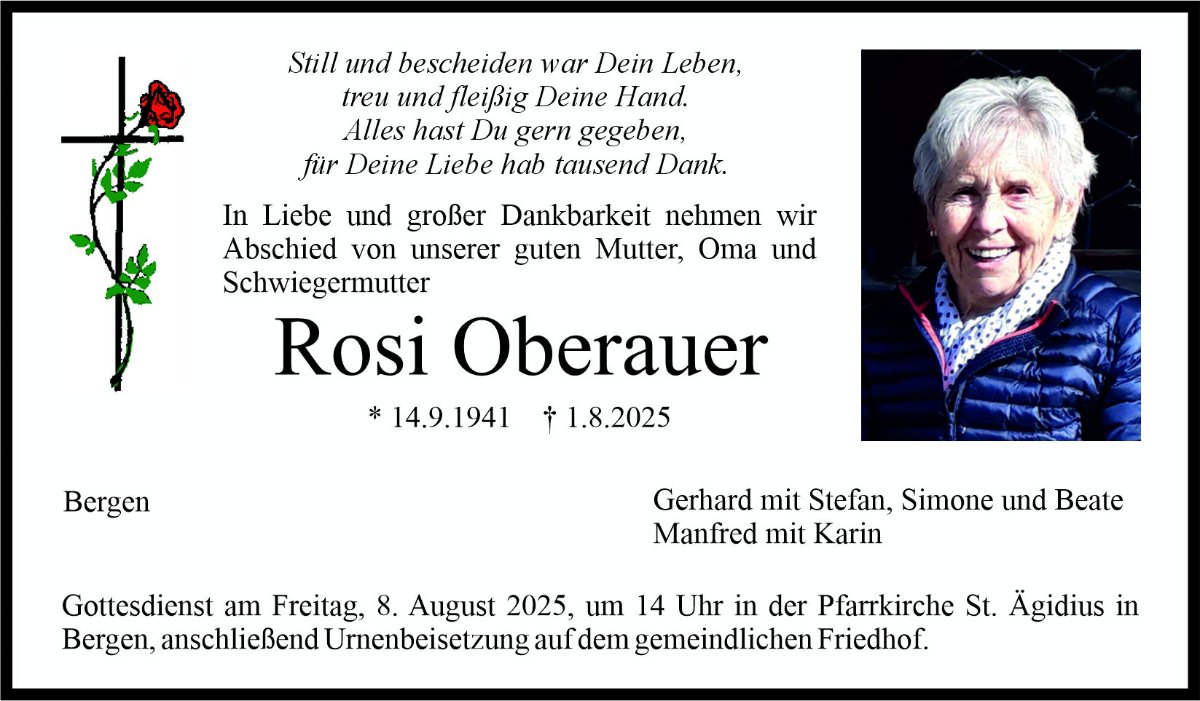 Liebe Familie Oberauer, mein aufrichtiges Beileid, ein kleiner Trost ist jedoch, dass sie nun erlöst ist ❤️